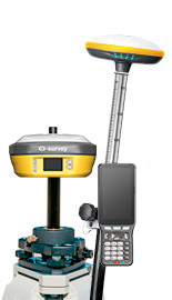 1 Receptor eSurvey E300 integrados de 2 bandas con antena geodésica, radio-modem internos de 2W, bluetooth y wifi.